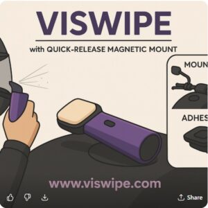 Your safety comes first. VisWipe is not recommended for use while your motorcycle is in motion. Always use it when stopped in a safe location. The goal is to make cleaning easier, not riskier.